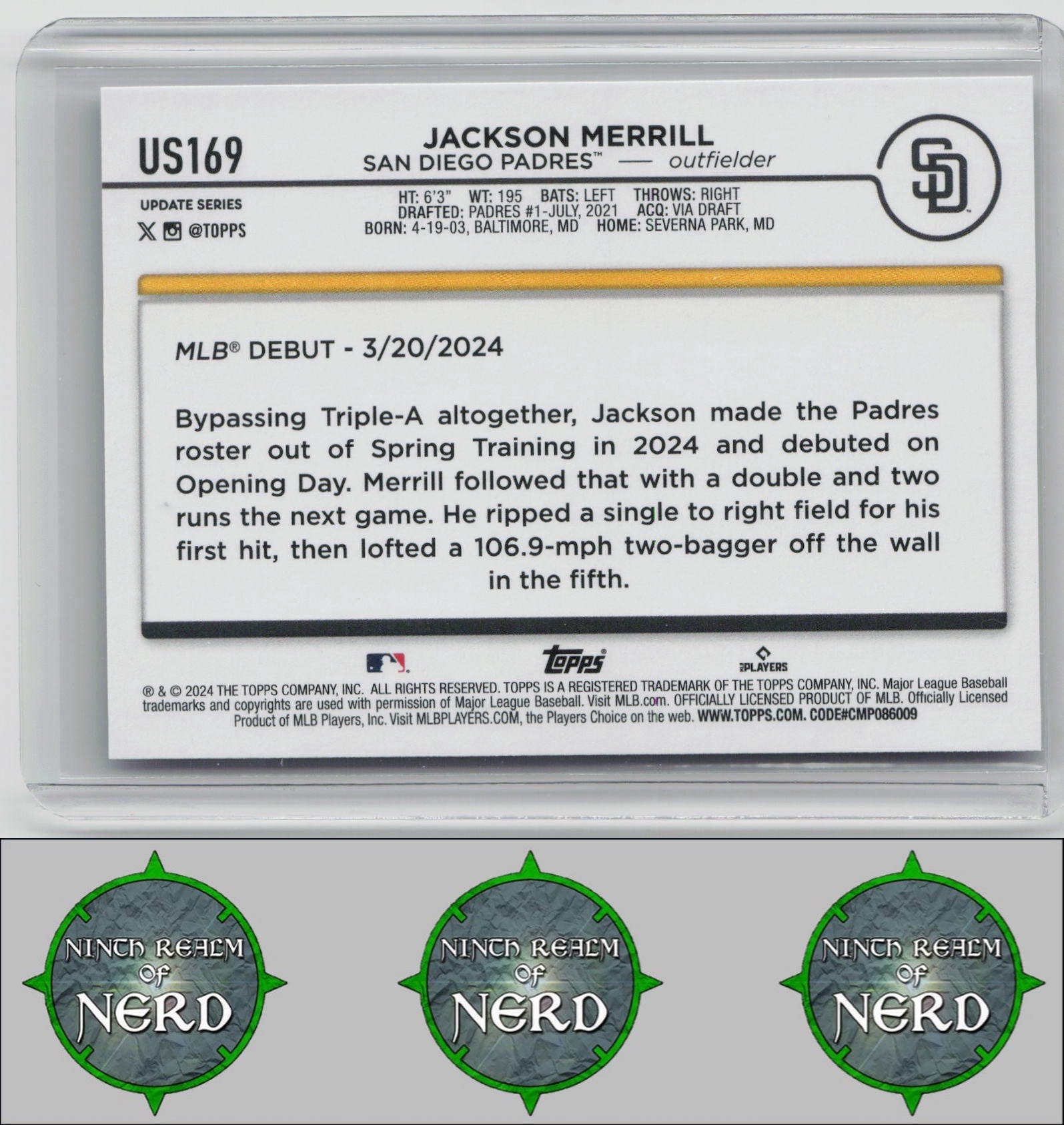 Jackson Merrill 2024 Topps Update #US169 San Diego Padres