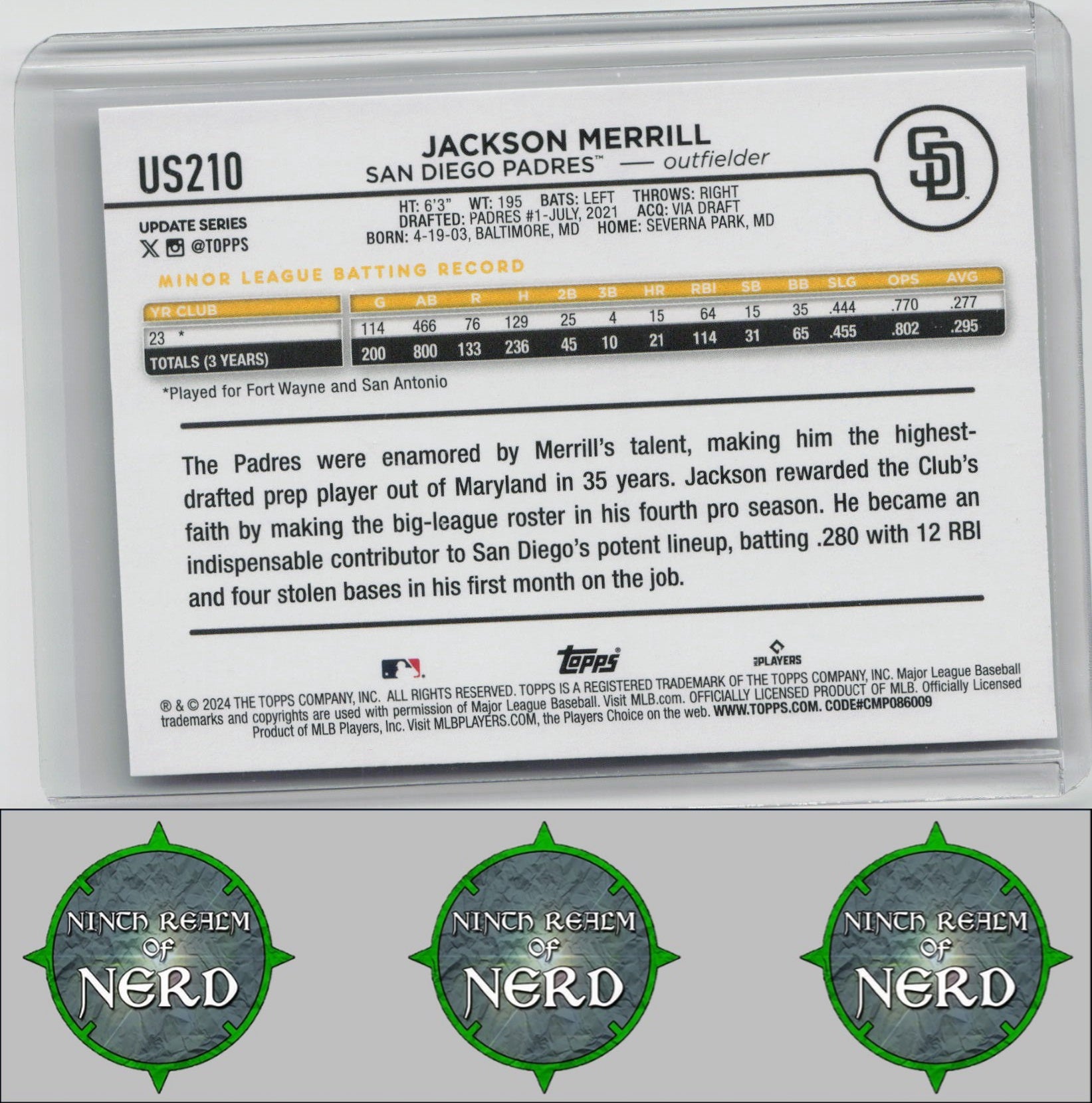 Jackson Merrill 2024 Topps Update #US210 RC San Diego Padres